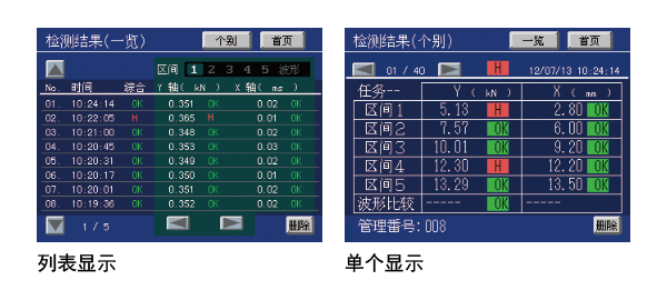 波形比较功能、各种特殊点保持功能的判定结果可以通过一览表显示。(最新的40个测量数据)