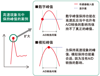 峰值信号保持后再进行A/D转换显示数值,因此峰值保持高速而精确。