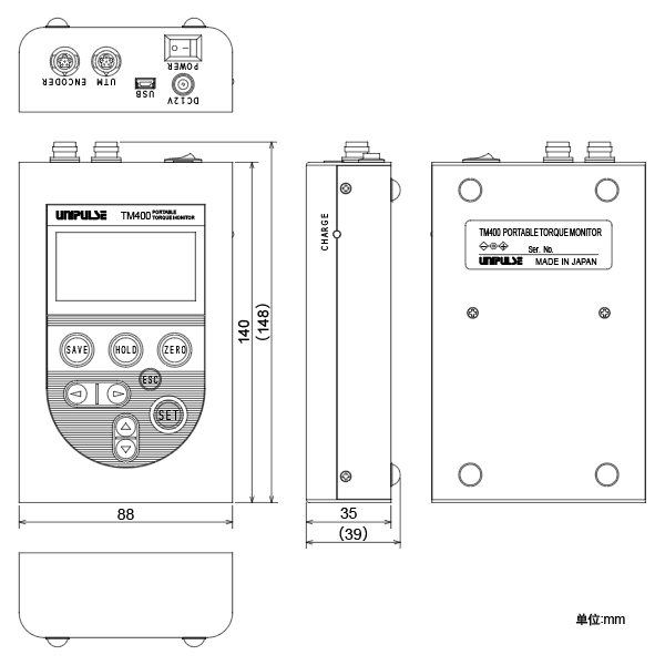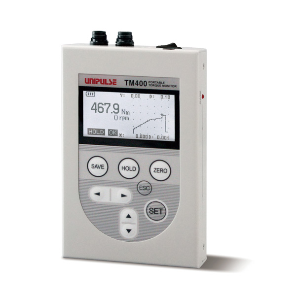 TM400采用UTMⅡ/UTMV系列接头, 插进就可以使用的测力仪表。没供电地方也可以使用。跟UTMⅡ编码器选件连接时, 可显示角度(位移)和扭矩的变动。
