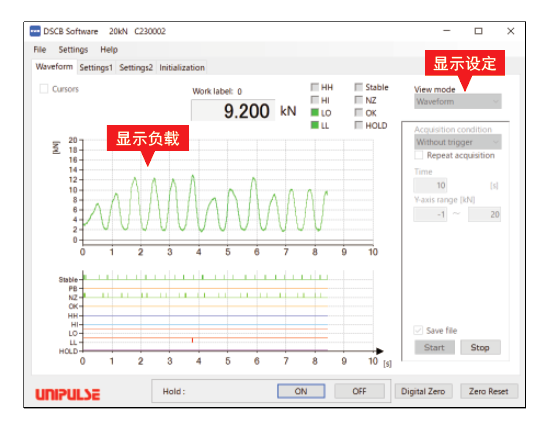 | 专用软件功能 | ・显示负载值 ・波形绘制 ・变更各种设定 ・数据保存功能 |