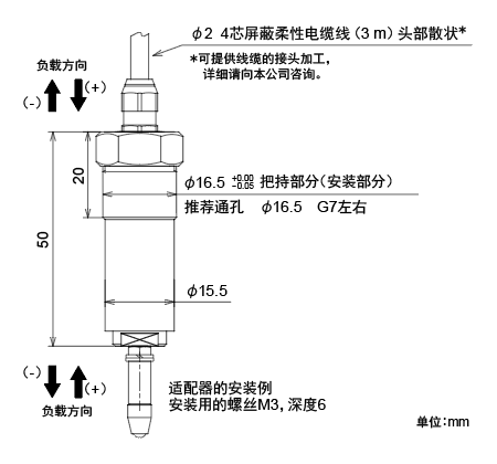 | 线缆 | φ2 4芯屏蔽软电缆 3 m 头部散状 |
