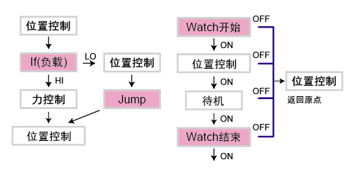 根据目前的负载,位移、I/O、计时、计数的状态,可以序列分支。